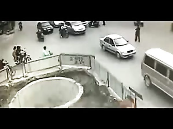 SCOOTERISTE MALADROIT TOMBE DANS UN TROU