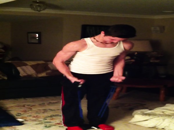FILMÉ ENTRAIN DE POSER SA PÈCHE LORS D'UN SPOT DE PUB DE FITNESS (00:16)