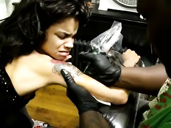 ELLE SOUFFRE LE MARTYR EN SE FAISANT TATOUER LE BRAS