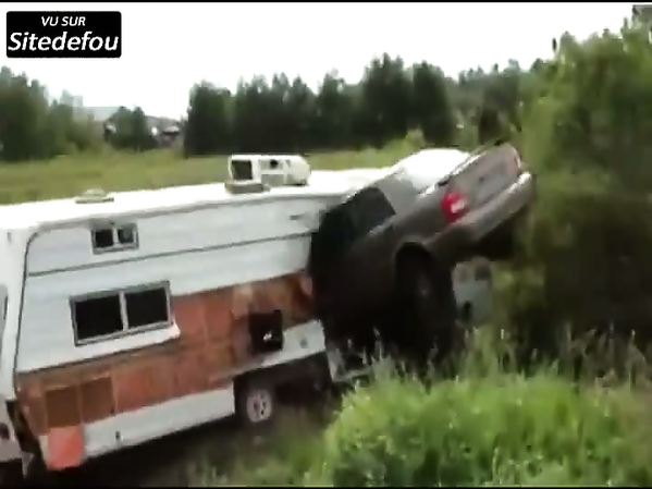 DE JEUNES RUSSES TRAVERSENT UNE CARAVANE AVEC LEUR VOITURE