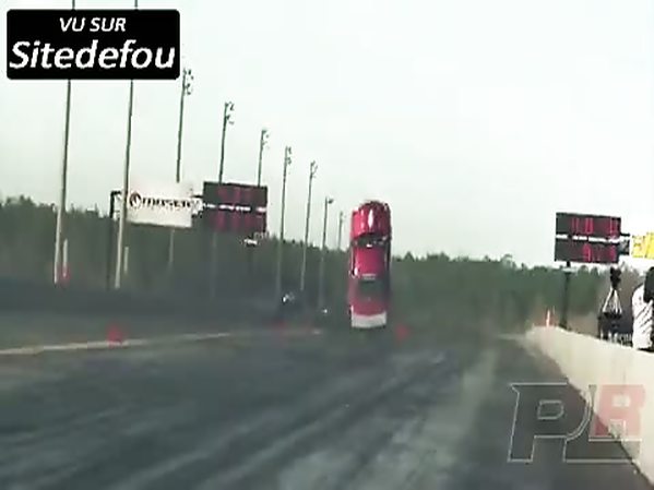 SA VOITURE S'ENVOLE PRESQUE LORS D'UNE COURSE DE DRAGSTER