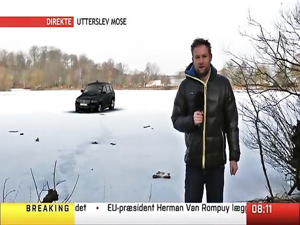 LA VOITURE D'UN JOURNALISTE (?) DISPARAÎT DANS UN LAC GLACÉ (FAKE?)