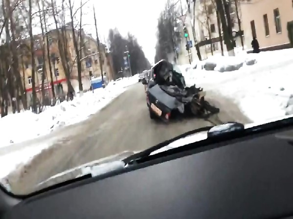 UN SCOOTÉRISTE SE FAIT POUSSER PAR UN CAMIONNEUR