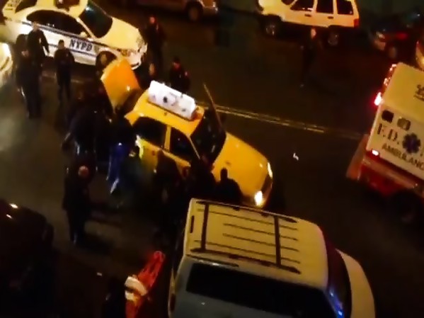 POLICIERS NEW YORKAIS SOULÈVENT UN TAXI POUR EXTRAIRE UN PIÉTON VENANT DE SE FAIRE ÉCRASER (L'HOMME EST ACTUELLEMENT DANS UN ÉTAT CRITIQUE)