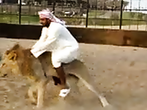 UN SAOUDIEN MONTE UN LION COMME SI C'ÉTAIT UN CHEVAL