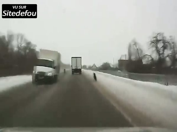 AUTOMOBILISTE PERD LE CONTRÔLE DE SA VOITURE EN DOUBLANT SUR UNE ROUTE GLISSANTE ET PERCUTE DE PLEIN FOUET UN CAMION