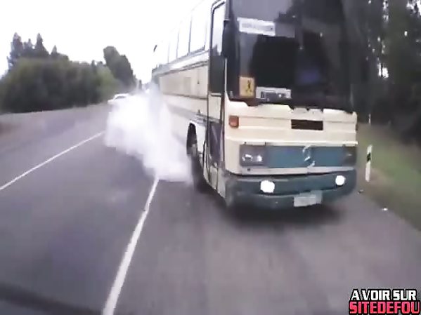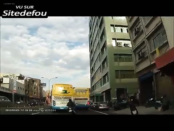 UN SCOOTER TENTE DE DOUBLER PAR LA DROITE .. ET PASSE SOUS UN BUS