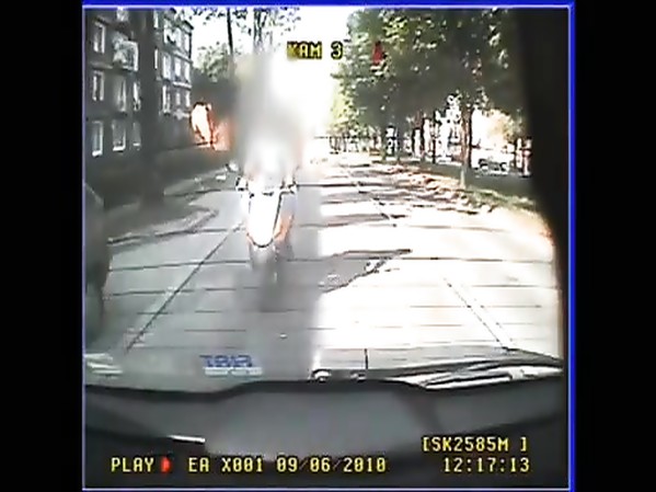 UN POLICIER TRAVERSE SANS PRÉVENIR UNE INTERSECTION ET SE FAIT PERCUTER