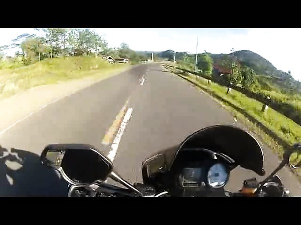 MOTARD ÉVITE DE TRÈS PEU UNE CAMIONNETTE QUI DOUBLE À L'ARRACHE