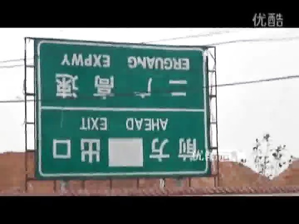 DES OUVRIERS ILLETTRÉS INSTALLENT UN PANNEAU DE SIGNALISATION À L'ENVERS