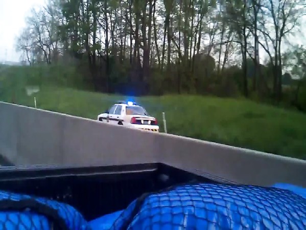 UNE VOITURE DE POLICE ROULE EN MARCHE ARRIÈRE SUR UNE VOIE RAPIDE
