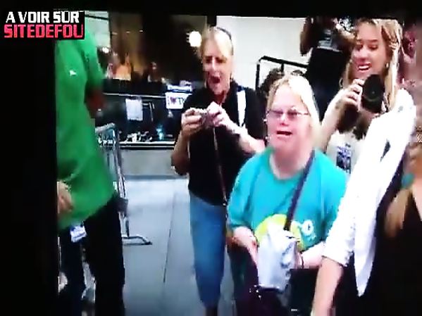 CHANTEUR OFFRE SON TEESHIRT À UNE FEMME TRISOMIQUE TOUTE ÉMUE (CUTE!)
