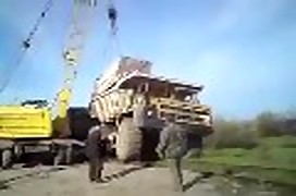 CAMION EN DÉSÉQUILIBRE S'EFFONDRE LORSQU'UNE GRUE LE CHARGE
