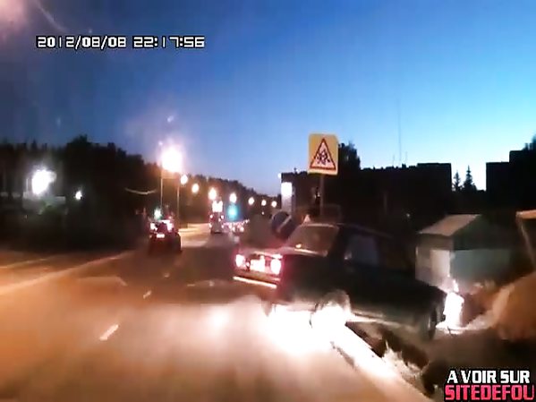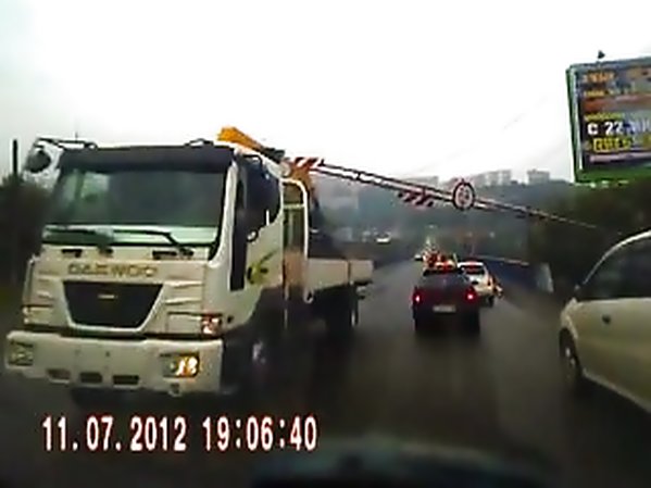 UN CAMION ARRACHE UN ÉLÉMENT DE SIGNALISATION DEVANT DES AUTOMOBILISTES RUSSES CIRCONSPECTS