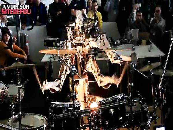 UN ROBOT AVEC 4 BRAS JOUE DE LA PERCUSSION