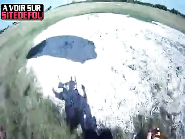 UN PARACHUTISTE AVEC LE VENT DANS LE CUL FAIT UN ATTERRISSAGE MOUVEMENTÉ