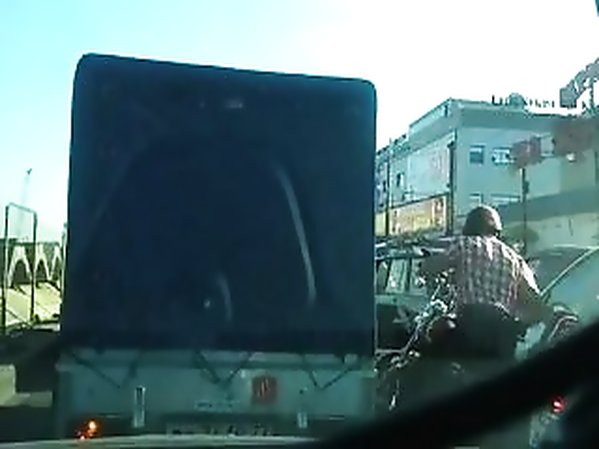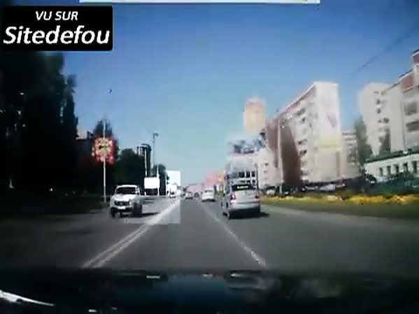 MOTARD MALADROIT PERCUTE UNE CAMIONNETTE ET S'EN VA (RIEN QUE LA MUSIQUE VAUT LE CLIC)