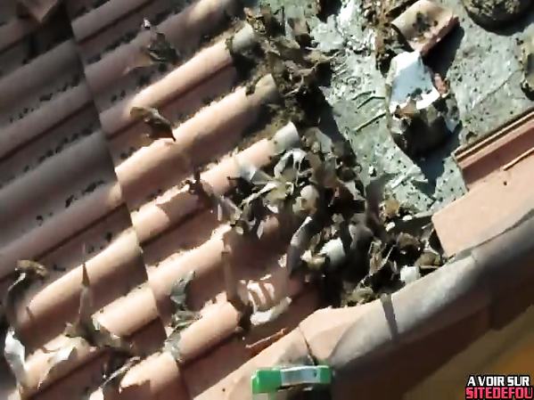 UN TOIT INFECTÉ DE CHAUVES-SOURIS