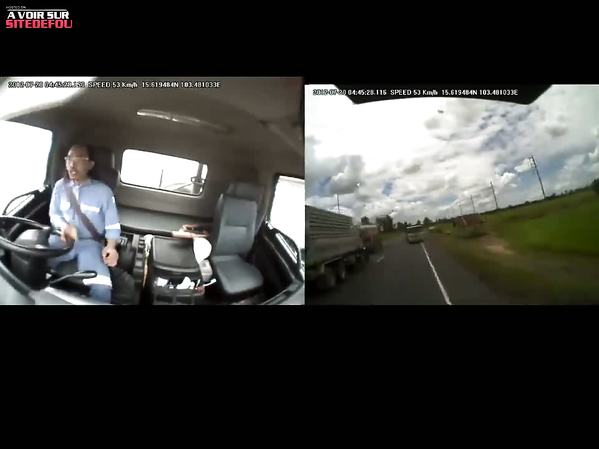 UN CAMIONNEUR DOUBLE SANS REGARDER ET SE RETROUVE FACE À UN AUTRE CAMION