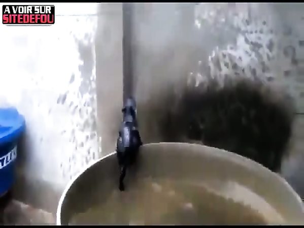 UN CHAT TENTE DE SAUTER SUR UN MUR ET RETOMBE INLASSABLEMENT DANS UN BAC D'EAU
