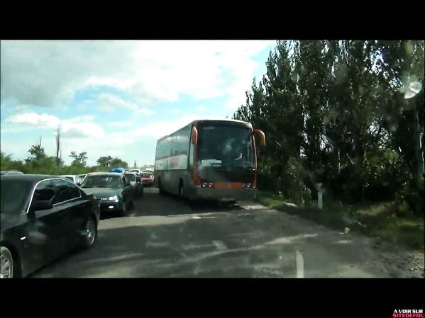 CET AUTOMOBILISTE A LE MALHEUR DE SE RETROUVER À CONTRE SENS D'UN BOUCHON EN UKRAINE