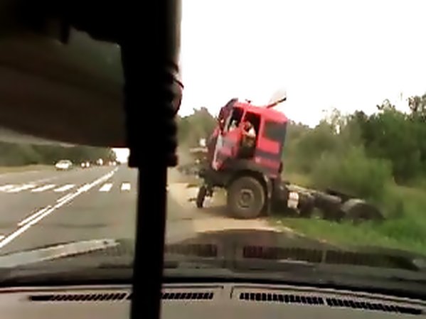CAMION ARRIVANT D'EN FACE GLISSE ET PERCUTE UN AUTOMOBILISTE